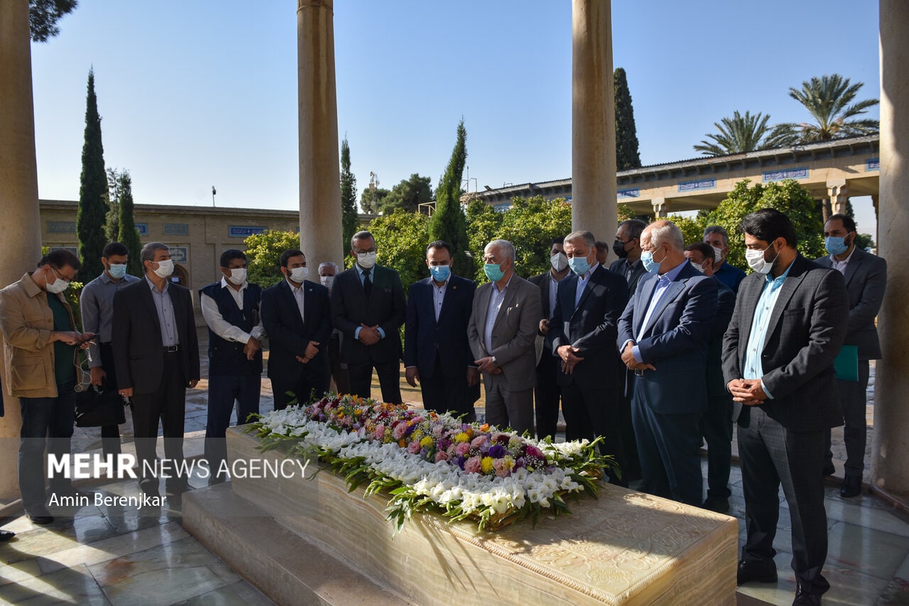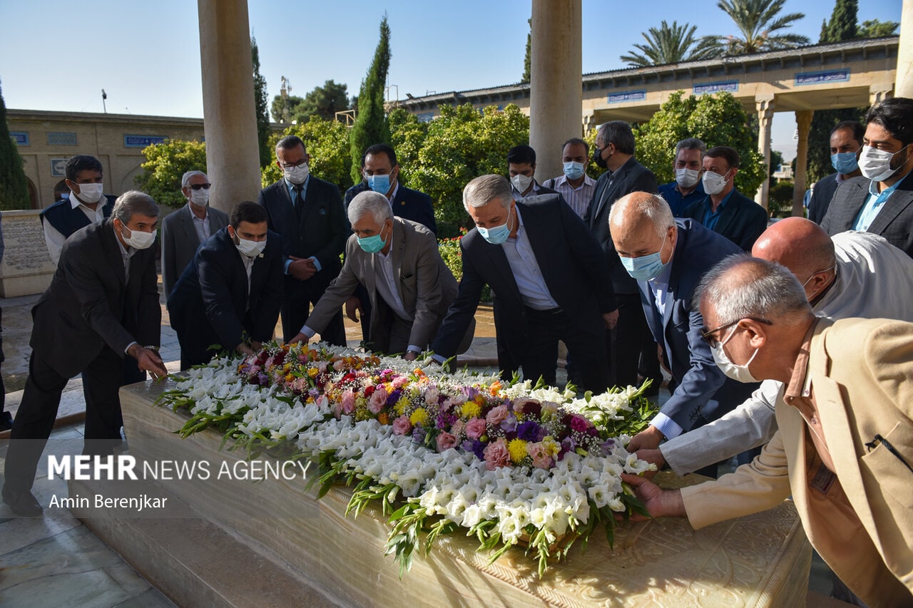 آرامگاه حافظ صبح امروز سه شنبه ۲۰ مهر با حضور جمعی از اهالی فرهنگ و ادب و مردم فرهنگ دوست شیراز گلباران شد.