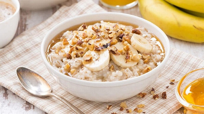 موز را هم به صورت حلقهای برش داده و همراه گردوها روی اوتمیل بچینید. در آخر از مقداری دارچین برای تزیین استفاده کنید.