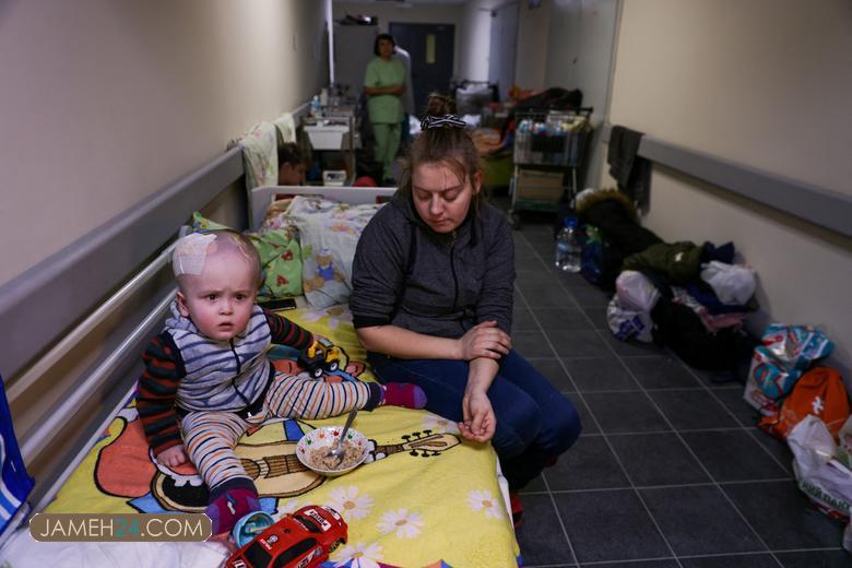 در زیرزمین کثیف یک بیمارستان کودکان در کیف، مادران و نوزادان با تخت‌ها و پتو‌های موقتی که در دو طرف راهروی سیمانی چیده شده‌اند، از ترس نیرو‌های روسی پناه گرفته اند. در تصاویر روز عکس هایی از پناهگاه مادران و نوزادان در جنگ اوکراین را ببینید.
