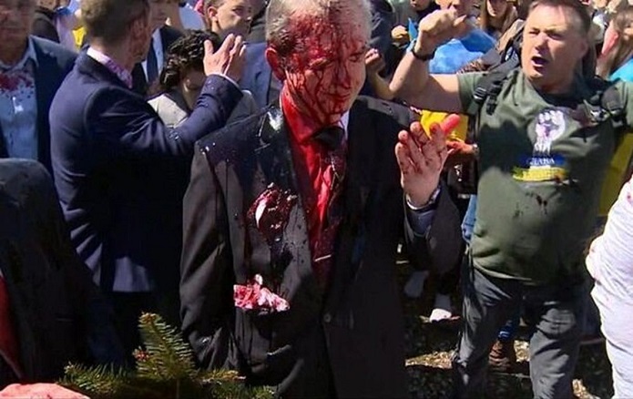 هنگامی که سفیر روسیه در لهستان می‌خواست در قبرستان سربازان شوروی در ورشو گل بگذارد، با رنگ قرمز مورد حمله قرار گرفت.