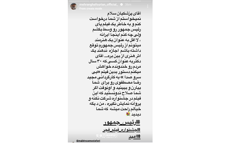 عکس/ درخواست جنجالی مهران غفوریان از پزشکیان