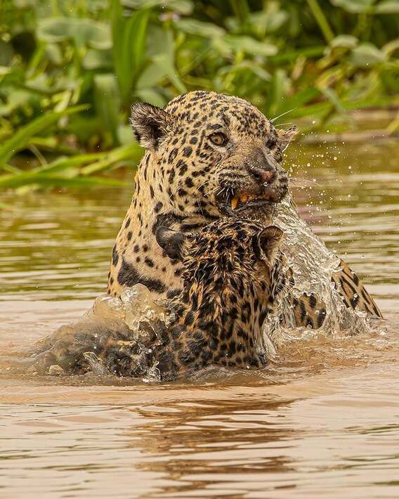 یک جگوار مادر بچه خود را به رودخانه پانتانال برزیل میآورد، جایی که توله بازی میکند و شنا یاد میگیرد. با گذشت زمان، مادر به تدریج به توله خود یاد میدهد که چگونه در رودخانه شکار کند. جگوارها شناگران ماهری هستند که از آب برای شکار و حرکت در تالابها استفاده میکنند. پانتانال، یکی از بزرگترین تالابهای گرمسیری جهان، محل زندگی جگوارهایی است که حیوانات مختلف را شکار میکنند.